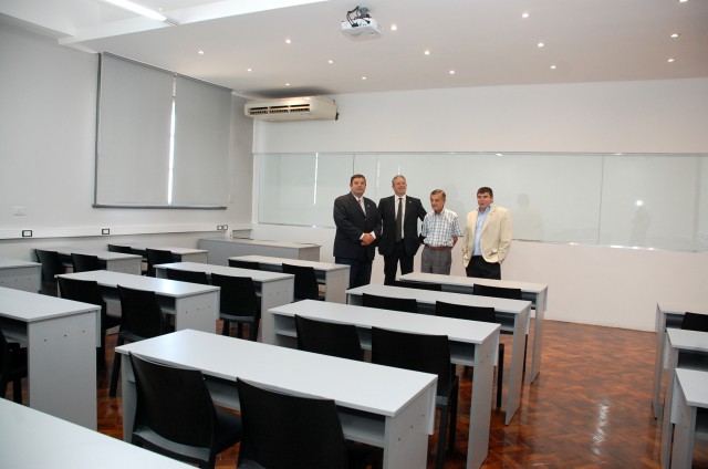 Las acciones de refuncionalización de aulas implican que las mismas sean reequipadas y dotadas de adelantos tecnológicos apropiados, entre los que merece destacarse la iluminación con tecnología led que permite triplicar la potencia lumínica, con un consumo efectivo de menos de un cuarto del sistema lumínico disponible anteriormente.