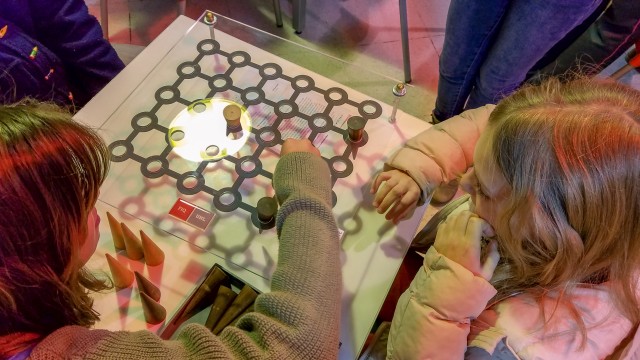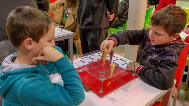 Durante la primera de las jornadas, la actividad propuesta fue “2 x 1 = jugar. Espacio de juegos matemáticos”. Una actividad lúdica lúdica con juegos de mesa y acertijos matemáticos que contó con la participación de estudiantes voluntarios y docentes del Departamento de Matemática de la Facultad. Esta actividad involucró juegos de mesa y acertijos matemáticos que desafiaron el ingenio y la lógica, en tanto un modo creativo de abordar distintos niveles de dificultad en ramas de la Matemática como la Geometría, Aritmética, Combinatoria y Estrategia. Por su parte, los acertijos motivaron a los participantes a experimentar de manera individual o grupal con materiales concretos y a ensayar posibles soluciones a diversas situaciones.