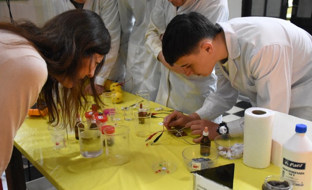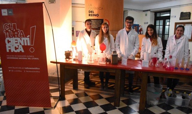 La participación del Área de Cultura Científica se realizó bajo la modalidad de mesas experimentales, con la colaboración de estudiantes guías convocados por el CEIQ, y se denominó: “Química en el Ambiente”. A través de esta actividad se propusieron diferentes experiencias que permiten comprender fenómenos cotidianos, identificar e interpretar reacciones y principios y, en suma, reconocer el papel fundamental que tienen la Química y la Física en el Ambiente. La propuesta estuvo integrada por las siguientes mesas experimentales: “Energía en acción. Reacción química con transferencia de electrones (e-)” y los guías: Emanuel Landolt, Ignacio Imvinkelried, Juan Scotta, Guillermo Zahler y Franco Nardi; “Decolorando el agua. Eliminación de contaminantes por catálisis o adsorción” y “Química a la pileta. Efecto desinfectante de la oxidación por cloro” con las guías: Julieta Chiarvetti y Agustina Lugo; “Viaje Limpio. Reducción de contaminantes producidos por caños de escape e industrias” y“Radiación retenida. Aumento de la temperatura por efecto del CO2” con los guías: Sofía Moix y Pedro Fontana e Ing. Qca. Inés Frazzatti; y “¿Dónde estamos parados?. La Física y la Química de los suelos” y las guías: Sol Ruscitti y Milena Solis.
