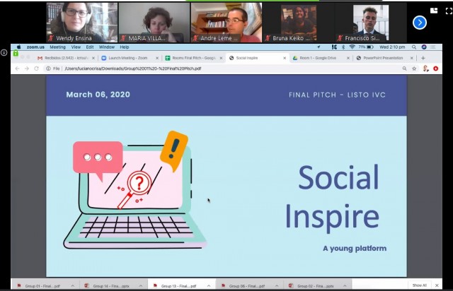 El 6 de mayo fue la última clase, en la que se desarrolló el concurso a la mejor presentación (pitch) y mejor proyecto. Un total de 15 grupos presentaron sus trabajos en tres salas de plataforma Zoom, resultando ganadores en dos categorías diferentes: mejor pitch y mejor proyecto. Participaron un total de diez estudiantes UNL de los cuales cuatro integraron los siguientes equipos ganadores: EduPlat (Mejor Pitch), Francisco José Simoré estudiante de Ingeniería Industrial de FIQ-UNL; GreenWorld (Mejor proyecto), Lautaro Vogt estudiante de Licenciatura en Química de FIQ-UNL; COVID-INFO (Mejor Pitch), Lucía Pierantoni estudiante de Ingeniería Química de FIQ-UNL; y sBricks (Mejor proyecto), Bruno Zamar estudiante de Ingeniería Industrial de FIQ-UNL.