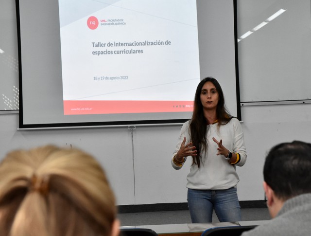 El jueves 18 y el viernes 19 de agosto, la Facultad de Ingeniería Química de la Universidad Nacional del Litoral (FIQ-UNL) realizó un Taller de Internacionalización de espacios curriculares para docentes. Fue en busca de fortalecer y consolidar las políticas de internacionalización integral con el objetivo de brindar a la comunidad docente de la Facultad los conceptos y herramientas necesarias para la implementación de estrategias de internacionalización del currículum y compartir experiencias de este tipo de actividades. La iniciativa, coordinada por la Dirección de Relaciones Internacionales de FIQ, se desarrolló en el Aula Leloir (2do piso, Edificio Gollán).