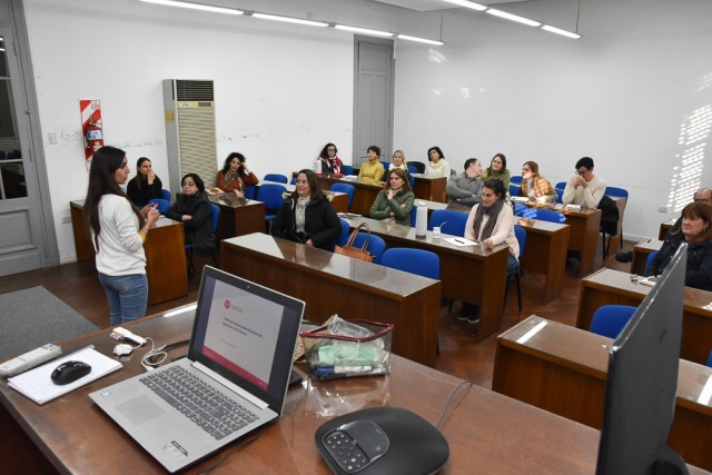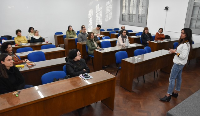 Durante la segunda jornada, Verónica Galván presentó el ciclo de seminarios internacionales desarrollado en el marco del Núcleo Disciplinario Ingeniería de los Materiales de la Asociación de Universidades Grupo Montevideo (AUGM) y luego se realizó una actividad práctica donde los y las docentes comenzaron a pensar estrategias para internacionalizar sus asignaturas, delineando objetivos y acciones y analizando posibles socios internacionales.