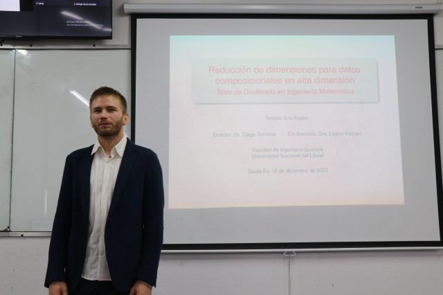 El viernes 15 de diciembre, en la Facultad de Ingeniería Química de la Universidad Nacional del Litoral, el Ing. Eric Lionel Koplin se convirtió en el primer Doctor en Ingeniería Matemática de Argentina. Su tesis, titulada: “Reducción de dimensiones para datos composicionales en alta dimensión”, fue dirigida por el Dr. Diego Tomassi y co-dirigida por la Dra. Liliana Forzani.