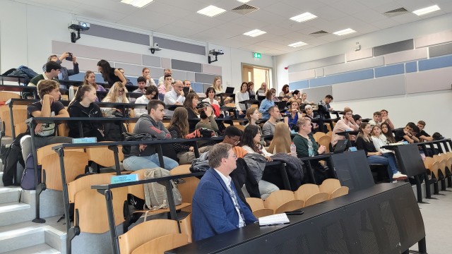 Durante la semana de actividades presenciales en Carlow, el día lunes, la empresa Tirlan, una cooperativa láctea irlandesa, presentó el desafío que los estudiantes resolverían en los equipos internacionales. El desafío consistió en “diseñar una estrategia de mediano a largo plazo para la reducción de carbono, con un enfoque principal en el transporte pesado de mercaderías en el entorno nacional”. Para ello, los equipos participaron de sesiones teóricas de formación en temas relacionados con el flujo de materiales, el flujo de información y el flujo de dinero de la cadena de suministro. El martes, se realizó una visita a la empresa, ubicada en la ciudad de Kilkenny, donde los estudiantes recibieron información técnica de apoyo para la resolución del desafío.