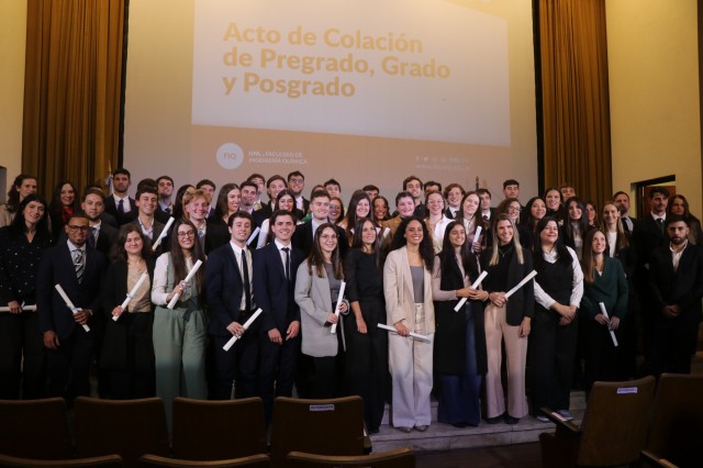 Del 10 de octubre de 2024 hasta el 31 de marzo de 2025, se graduaron 74 profesionales. De la carrera de Químico Analista: Scarafia, Camila; y Sasia Blasón, Marcos José. De Analista Industrial: Giorgis, Ana Laura. De Ingeniería en Alimentos: Olivera, Lía Milena; Recamán,Sofía; Roskopf,Camila Luana; Sorbelini,Victoria; y Romero, María Lucila. De Ingeniería Industrial: Brassesco, Luciana; Castrodeza, Josefina; Didier, Florencia Natalia; Eggstein, Josefina; Günthardt Moia, Conrado Luis; Losa, Matías; Rabbia, Nicolás Agustín; Rodriguez Gazali, Joaquín; Sato, Juan Cruz; Trinchieri Pellegrino, Francesco; y Trucco, Diego José. De Ingeniería Química: Barañao, Luciana Florencia; Basualdo, Ignacio Matías; Bender, Facundo; Bianchi, Eugenio; Bressan, Virginia Alexia; Bulchi, Gianluca; Burgos, Nicolas Sebastian; Calvi Moreno, Néstor Iván; Cammisi, Juan Manuel; Chaulet, Karen Gisela; Collomb, Noelia; Diderle, Juan Andrés; Escalas, Facundo Sebastián; Garcia Gabas, Agostina; Gareis, Giuliana Carolina; Giuliani, Tomás Alejandro; Gomez, María Fernanda; González Natali, Benjamín Lucas; Landoni Echeverriborda, Camila; Latini Spahn, Silvio Nicolás; Loreficcio, Giovanni Nicolás; Lucas, Mariano; Lupotti, Agustín; Mahmud, Tomás; Minen, Juan Martin; Molina, Justo Daniel; Musetti, Augusto; Osorio, Julia; Pilatti, Giuliana; Queiruga, Germán Daniel; Riera Torres, Daniela María; Rossi, Micaela Agustina; y Valenti, Lucía Belén. De Ingeniería en Materiales: Genovesi Bidal, Franco; Giancarelli, Paulina; y Maciel, Francisco Julián. De la Licenciatura en Ciencias y Tecnología de los Alimentos: Pividori, María Cecilia; y Zilli, Matías José. De la Licenciatura en Química: Cabrera, Florencia Belén; y Clemenz, Maria Florencia. De la Licenciatura en Física: Fernández,Juan. Del Profesorado en Química: Donnet, María Sol. Del Doctorado en Ciencia y Tecnología de Alimentos: Acosta, Nadia Belén; y Heinen, Gabriel. Del Doctorado en Matemática: Ivaniszyn, Bárbara Solange. Del Doctorado en Química: Guerrero Gutierrez, Jhonnys David; y Núñez, José Luis. De la Maestría en Ciencia y Tecnología de los Alimentos: Del Río, Josefina María.